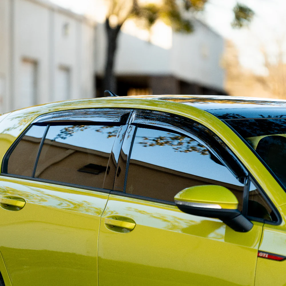These visors are designed around the MK8 door and window shape so they sit tight, look OEM plus, and do what they are supposed to do: smooth airflow, cut cabin buffeting, and keep rain out when the window is slightly open.